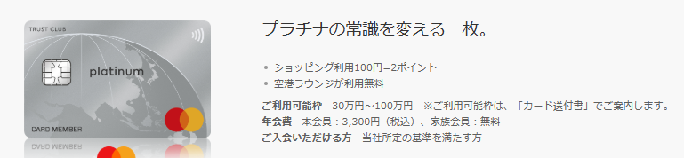 TRUST CLUB プラチナマスターカード - コスパ最強のプラチナカード16選目